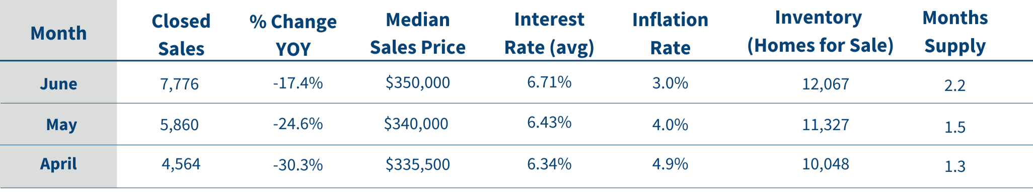 However, there was a notable bright spot, and one that might signal a resurgent housing market next year. As the Federal Reserve hiked interest rates, inflation fell, bringing needed relief to consumers. The national inflation rate finished June at 3%. Because of the rapid decline in inflation, many economists predict the Federal Reserve won’t raise its interest rates again in the near future. Decelerating inflation should improve consumer confidence, and most critically, ease the pressure on mortgage rates and revitalize closed sales in 2024.